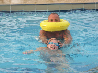 Nick, Dom, Dad, Jay and Luca went on these reeeeaaaallllly big water slides that looked really freaky!!!! They were so awesome and we went really fast. We started off really high!!!!!!! We went so fast our lips were shaking while we were coming down! We went back on the ones we liked again. Then we went home.